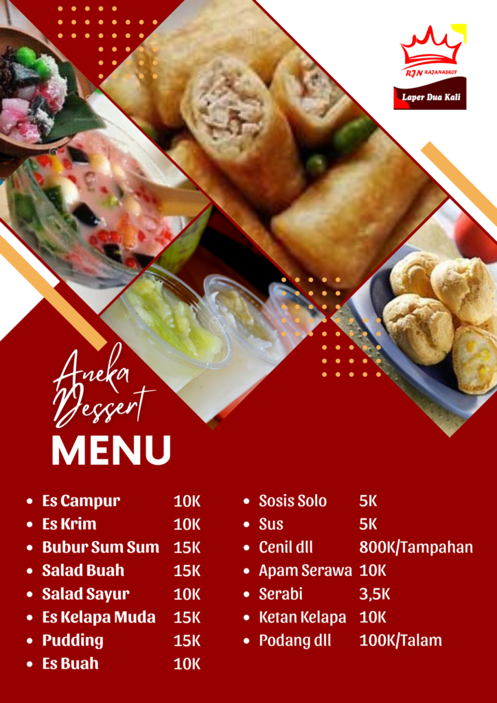 Isi Menu : Bingka Ambon, Putu Belanda, Roti manis, Lemper, Minum Kemasan Botol Mini.